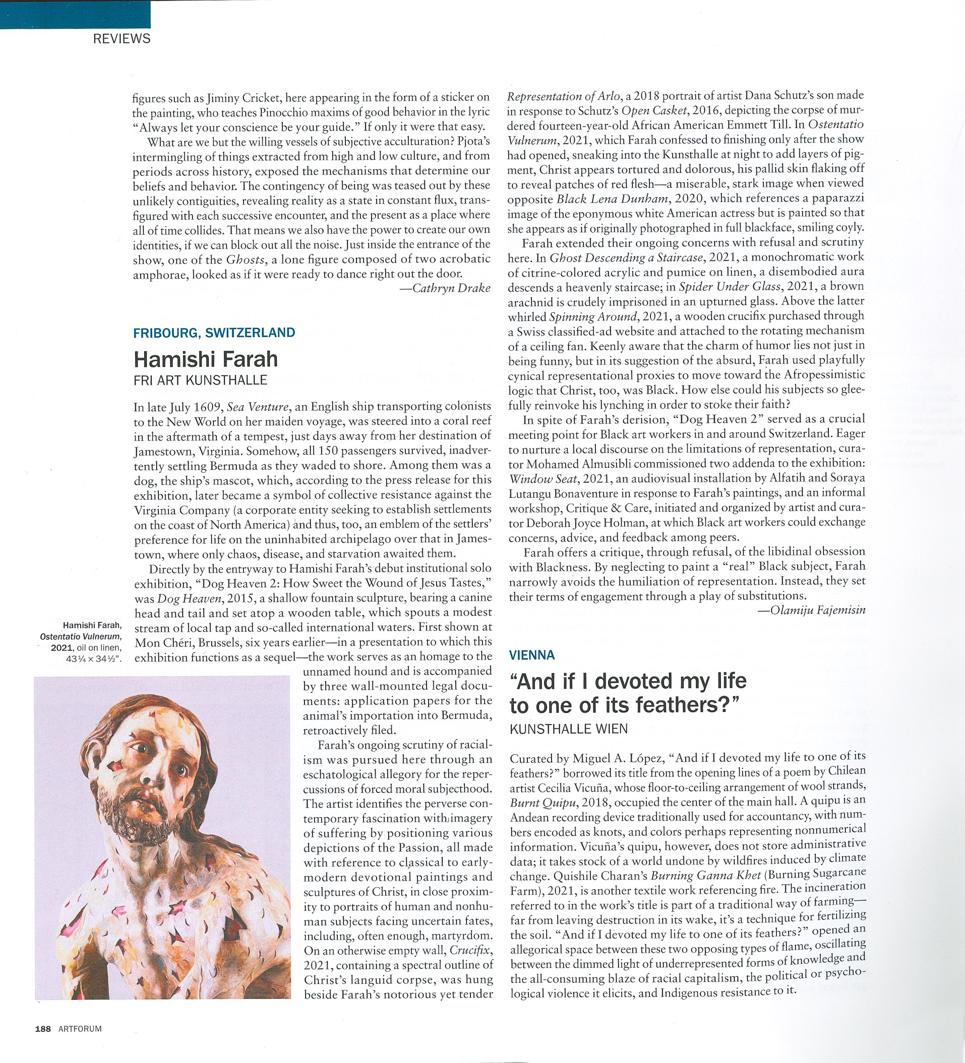 2021 Artforum Artforum – Hamishi Farah in Kunsthalle Friart FribourgHamishi Farah, Dog Heaven 2: How Sweet the Wound of Jesus Tastes